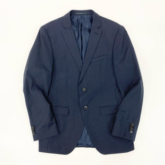 50h25 HUGO BOSS ヒューゴボス REDA SUPER110 セットアップ スーツ ストライプ ビジネス フォーマル 48 ネイビー ウール メンズo07t