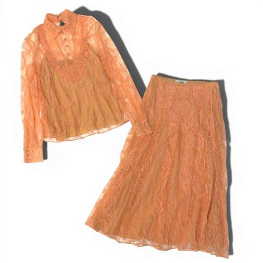 82a29 FENDI フェンディ インナーキャミ付き レースブラウス スカート セットアップ サイズ38 オレンジ レース素材 レディース ドレスk02i