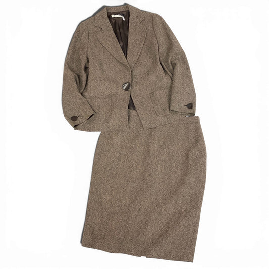 22a23 《美品》 Salvatore Ferragamo サルヴァトーレフェラガモ スカートスーツ セットアップ 大ぶりボタン I46 ブラウン レディースu02t