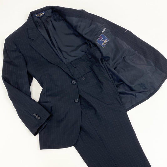 2l14 ② Brooks Brothers ブルックスブラザーズ 1818 Madison 2B ストライプ スーツ セットアップ 42 ダークネイビー ビジネス フォーマル 上下セット ジャケット スラックス