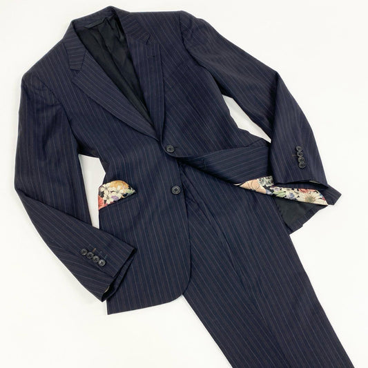 23l14 Paul Smith ポールスミスLoroPiana ロロピアーナ生地 4シーズン 裏地花柄 総柄 2B シングルスーツ セットアップ サイズM ネイビー メンズ 紳士 通年