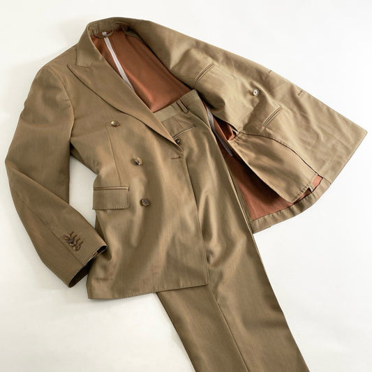 33i23 CUSTOM TAILOR BEAMS カスタムテーラー ビームス ロロピアーナ生地 130's ダブルブレスト 本切羽 セットアップ スーツ S-Mサイズ相当 玉虫 ベージュ系 ヘリンボーン ウール メンズ 男性用