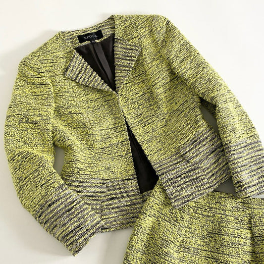 6h10 EPOCA エポカ ツイード スカートスーツ セットアップ 40 イエロー 日本製 ジャケット ブレザー レディース 女性用