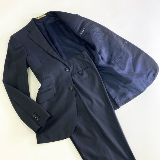 4j17 《美品》 Paul Stuart ポールスチュアート SPECIAL ORDER 日本製 セットアップ スーツ ビジネス◎ フォーマル◎ ジャケット パンツ ネイビー ウール