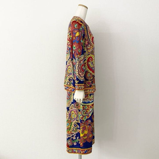 72i26 LEONARD レオナール 美しいプリント スカートスーツ セットアップ ノーカラージャケット/膝丈スカート 0389102 サイズLL マルチカラー ウール シルク レディース 日本製