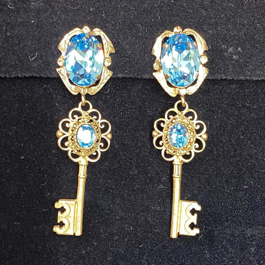 l6 DOLCE&GABBANA ドルチェアンドガッバーナ クリスタル ビジュー キー イヤリング ゴールド ブルー アクセサリー ピアス 箱付き D&G ドルガバ