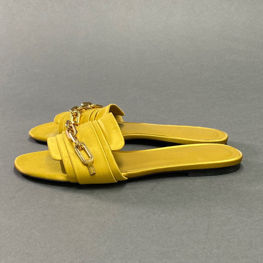 2a9 BURBERRY バーバリー ゴールドチェーン サテンサンダル 37 イエロー イタリア製 シューズ 夏