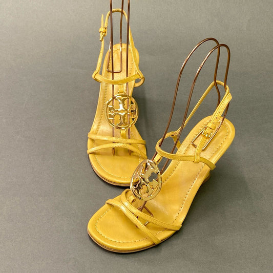 2a6 《美品》 TORY BURCH トリーバーチ ウェッジソール 金ロゴプレート サンダル 6M イエロー レザー シューズ 靴 パンプス