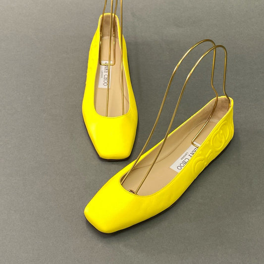 6a6 《極美品》 JIMMY CHOO ジミーチュウ サイドロゴ フラットパンプス 35 1/2 イエロー レザー イタリア製 スリッポン シューズ 靴