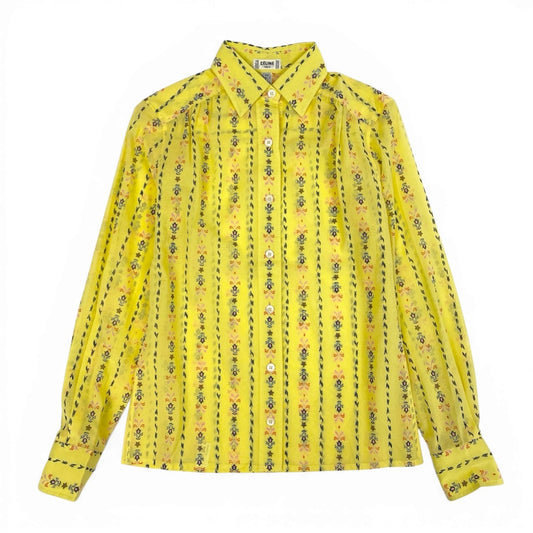 Ab10 【極美品】CELINE セリーヌ デッドストック 80’s 長袖フローラルプリントシャツ Button-Down Shirt in Bright Yellow 36サイズ イエロー コットン100% レディース 女性用ta1