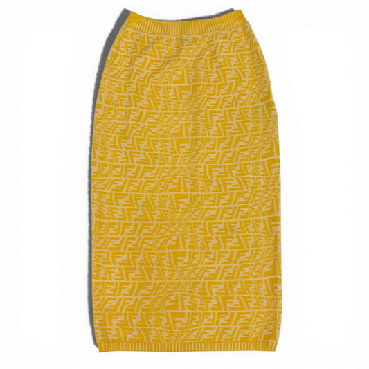 Ib7 【美品】FENDI フェンディ 2021 ズッカ柄 ニットスカート FF Logo Pencil Skirt 38サイズ イエロー レディース 女性用ta1