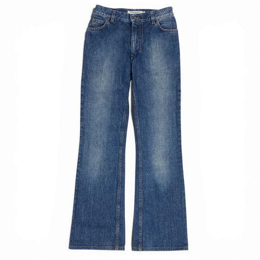 Ia14 Yves Saint Laurent ヴィンテージ イヴサンローラン YSLロゴ バックポケット フレアデニム デニムパンツ サイズ44 インディゴ コットン100 レディース 女性用 ボトムk02i