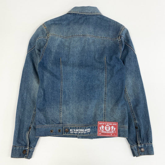 9j6 AAPE BY A BATHING APE エーエイプ バイ アベイシングエイプ ロゴプリント デニムジャケット ATE2214 Mサイズ インディゴ コットン メンズo07t