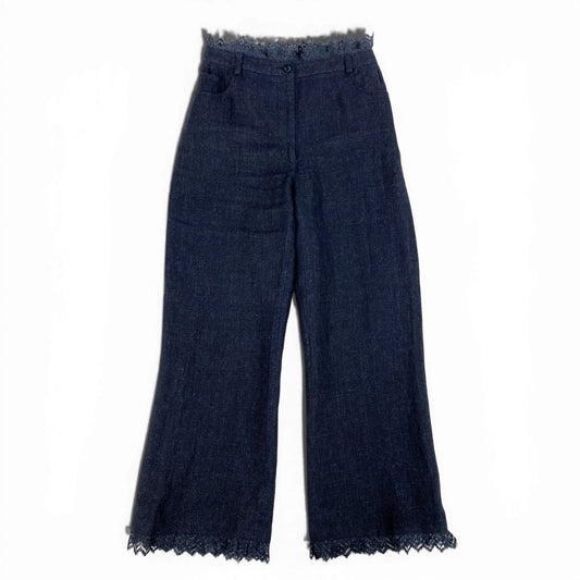 13b10 CHANEL シャネル 2001 リネンツイードワンドパンツ Indigo Linen Wide Pants P17165V09669 46サイズ インディゴ リネン100% レディース 女性用ta1