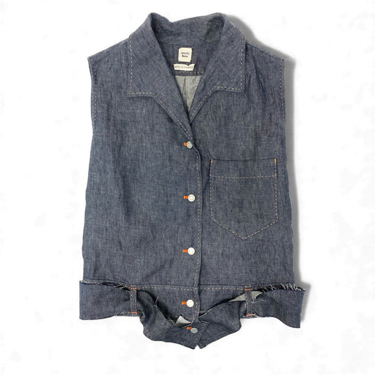 10k11【美品】HERMES PARIS エルメスパリス ノースリーブデニムシャツ デニムベスト リネン100% ゴルチエ期 フランス製 34サイズ インディゴ レディースu02t