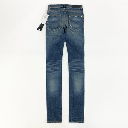19g28《未使用》タグ付 AMIRI アミリ 蛇腹ダメージ加工 スキニーデニムパンツ ジーンズ ボトムス クラッシュ加工 SR1PXMD001SAMDSI 28 インディゴブルー コットン メンズ