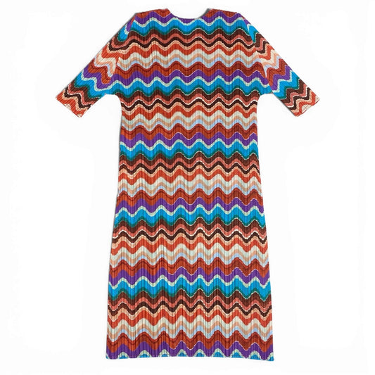 Aa7 【美品】 PLEATS PLEASE プリーズプリーツ イッセイミヤケ 半袖ワンピース プリーツ ボーダー柄 PP83-JH724 3 オレンジ系 レディース 女性用k02i