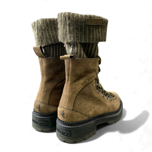 1L10 【美品】JIMMY CHOO ジミーチュウ デヴィンニットソックス スエードブーツ 8ホールブーツ ブーツ 42サイズ カーキ メンズk02i