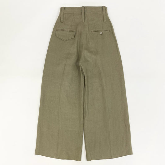 40h24 CELINE セリーヌ リネンパンツ ハイウエスト ワイドパンツ スラックス フィービー期 2 1V71/3230 34サイズ カーキ レディース 女性用k02i