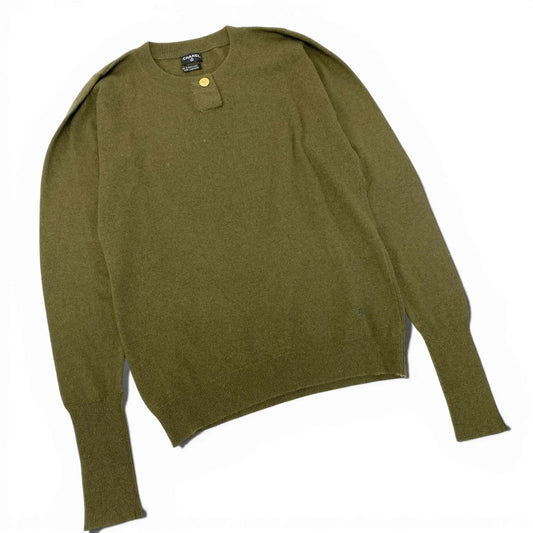 Ca16 CHANEL シャネル ピュアカシミヤ 100% セットアップニット 金ボタン サイズM カーキ Cashmere Knit Set Up ココマークt18r