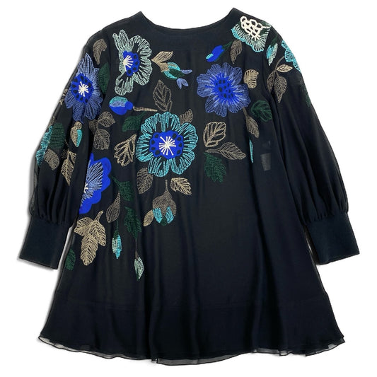 64k19《美品》 TOKUKO 1er VOL トクコプルミエヴォル チュニックワンピース シアーカットソー 花柄モチーフ 刺繍 レディース 女性用 9 ブラックu02t