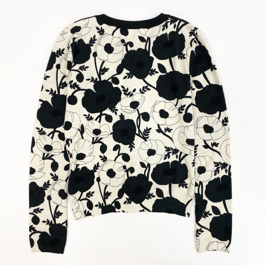 31k2 Blumarine ブルマリン イタリア製 長袖ニットカーディガン 花柄プリント ビジュー スパンコール 38 ホワイト ブラック レディースo07t
