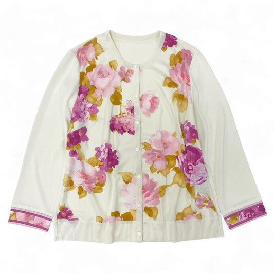 38k16 LEONARD レオナール カーディガン カンカン素材 花柄 日本製 0157201 42サイズ アイボリー マルチカラー レディースu02t