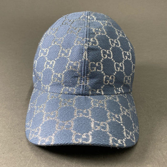f6 GUCCI グッチ GGラメ ベースボールキャップ 631953 S 56cm ブルー 帽子 6パネル CAP イタリア製
