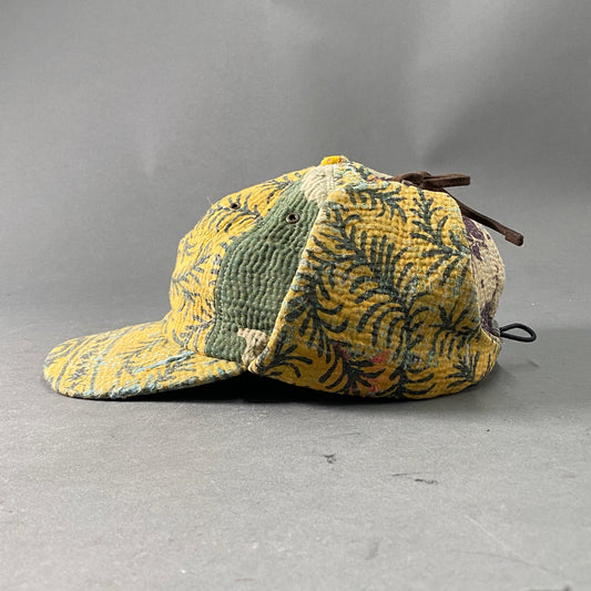 A25 日本製 Sillage シラージ キャップ 耳当て付き ワークキャップ F イエロー系 ビンテージ生地 帽子 メンズ 男性用