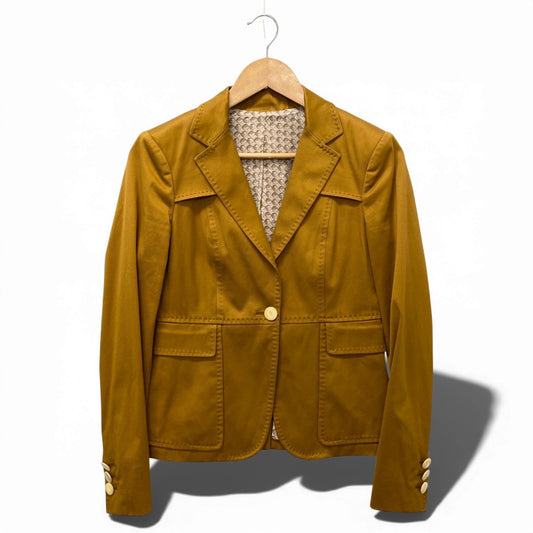 85a28 GUCCI グッチ テーラードジャケット ブレザー アウター 裏地 貝殻柄 42サイズ キャメル レディース 女性用u02t