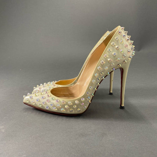 2b24 イタリア製 Christian Louboutin クリスチャンルブタン パンプス ハイヒール ピンヒール ポインテッドトゥ オーロラスタッズ 38 クリーム レディース 靴