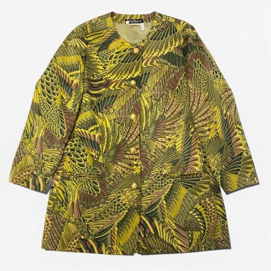 38a16 Salvatore Ferragamo サルヴァトーレ フェラガモ Vintage 金ボタン 総柄スプリングコート サイズ46 グリーン系 ヴィンテージ 女性服t18r