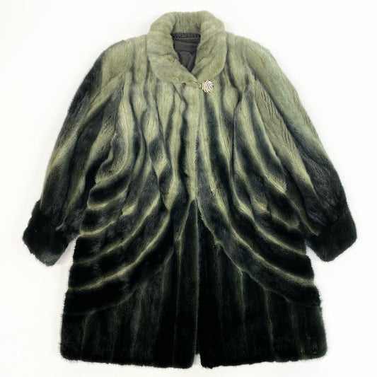 69L15 《希少》 AMERICAN Legend アメリカン レジェンド 染めミンク レアデザイン ロングコート サイズF グリーン系 最高級本毛皮 MINK FUR COATt18r