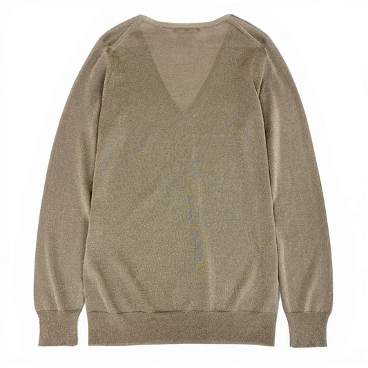 33a26 【美品】GUCCI グッチ Vネック ニットセーター ラメ GGロゴプレート トップス XLサイズ ゴールド レディース 女性用o07t