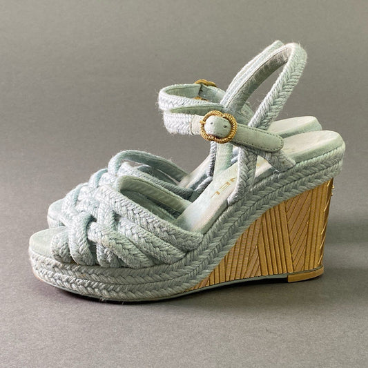 7a17 CHANEL シャネル ココマーク ウェッジソール ストラップサンダル 35C ゴールド ブルー イタリア製 厚底 シューズ 夏