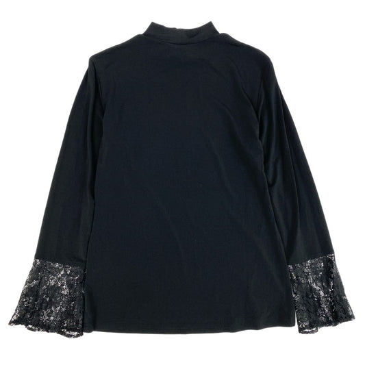 83L22 【美品】TOKUKO 1er VOL トクコプルミエヴォル 長袖カットソー ハイネックカットソー 袖口レースデザイン ストレッチ素材 9サイズ ブラック レディースu02t