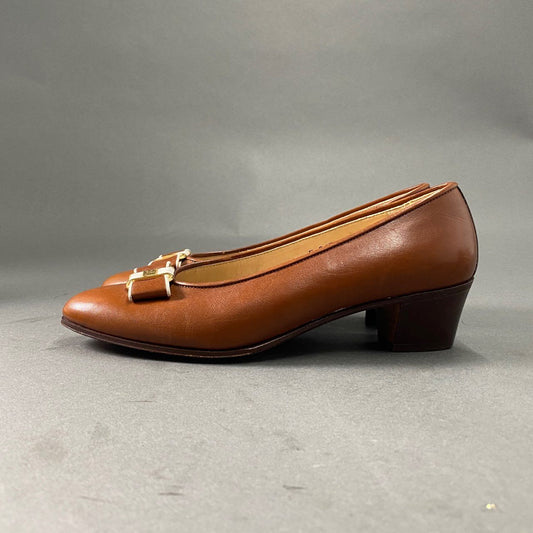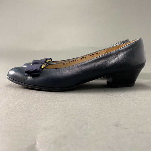3b6 Salvatore Ferragamo サルヴァトーレフェラガモ イタリア製 ヴァラリボン ヒール パンプス シューズ 6 1/2 ネイビー グリーン系 レザー MADE IN ITALY
