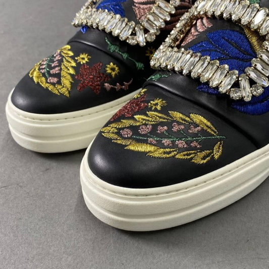 1g9 Roger Vivier ロジェヴィヴィエ イタリア製 ローカットスニーカー スリッポンシューズ 35 1/2 ブラック 刺繍 レディース