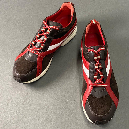 4A14 定価\44,100 BALLY バリー スウェードレザースニーカー EU38 1/2 ブラウン レッド レザー シューズ スイス製