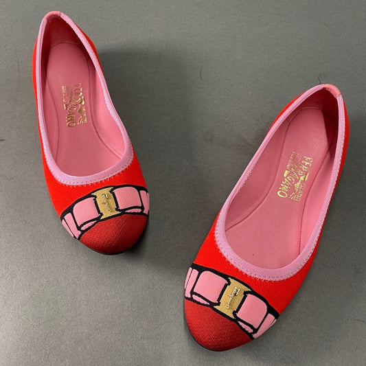 b6 《美品》 Salvatore Ferragamo サルヴァトーレフェラガモ VARINA KNIL フラットシューズ 5 1/2 ピンク イタリア製