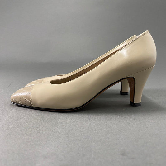 b6 Salvatore Ferragamo サルヴァトーレフェラガモ イタリア製 キルティング ヒール パンプス シューズ 6 ベージュ レザー MADE IN ITALY