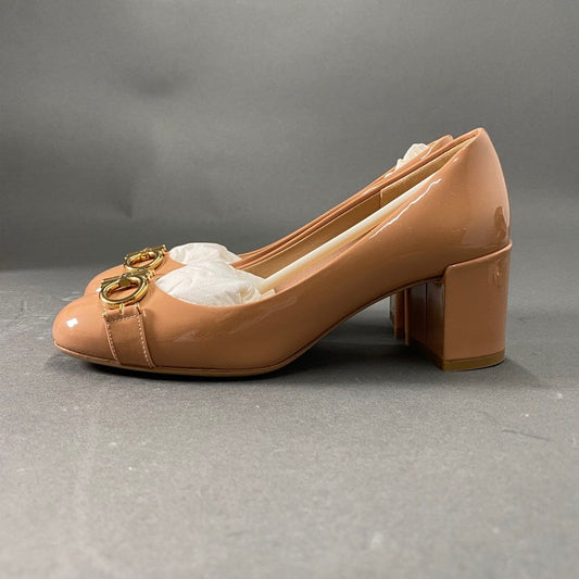 1b8 Salvatore Ferragamo サルヴァトーレフェラガモ イタリア製 GARDA ダブルガンチーニ チャンキーヒール パンプス シューズ 6 ピンクベージュ パテントレザー MADE IN ITALY