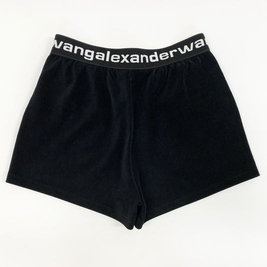 46f30 alexander wang.t アレキサンダーワン ウエストロゴプリント コーデュロイ ショートパンツ ハーフパンツ XS ブラック レディース