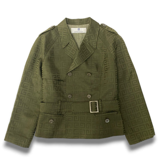 Ic5 Vintage GIVENCHY ジバンシィ ジャガードロゴ ショートコート 中綿ジャケット ダブルブレスト レディース 38 カーキu02t