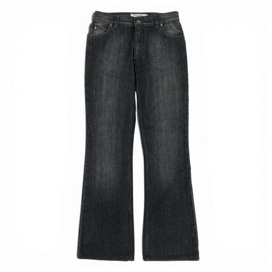 Ia14 Yves Saint Laurent ヴィンテージ イヴサンローラン YSLロゴ バックポケット フレアデニム デニムパンツ サイズ44 インディゴ コットン100 レディース 女性用 ボトムk02i