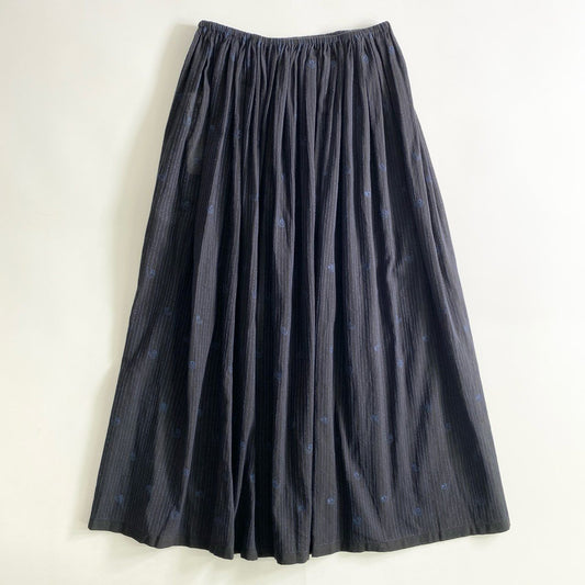 15c21 《極美品》 タグ付 mina perhonen ミナペルホネン 日本製 aas5276 swing flower スウィングフラワー ロングフレアスカート 36 ネイビー コットン MADE IN JAPAN