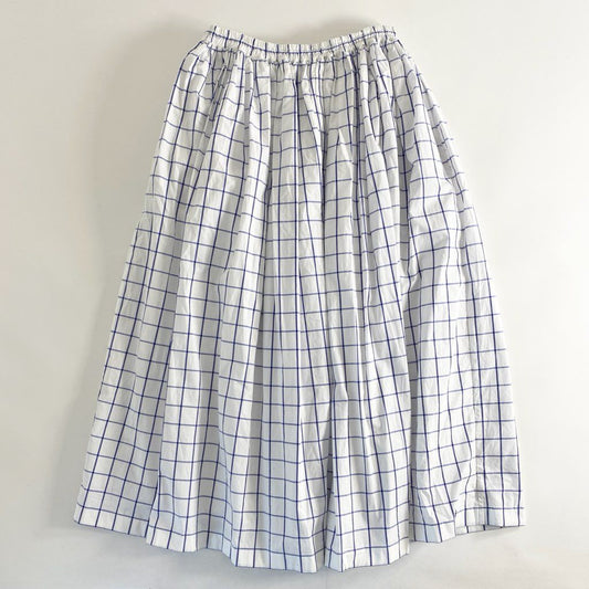 57c24 日本製 adeu アデウ ロングスカート チェックスカート 0 ホワイト ブルー コットン ウエストゴム ボトムス