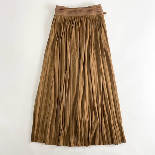 15c20 ATON エイトン 日本製 プリーツラップスカート ボトムス ロングスカート 02 ブラウン ウール MADE IN JAPAN
