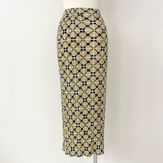 10c14 《美品》 PLEATS PLEASE プリーツプリーズ クローバー プリーツスカート 2 ベージュ ブラック 有刺鉄線 日本製 ISSEY MIYAKE イッセイミヤケ