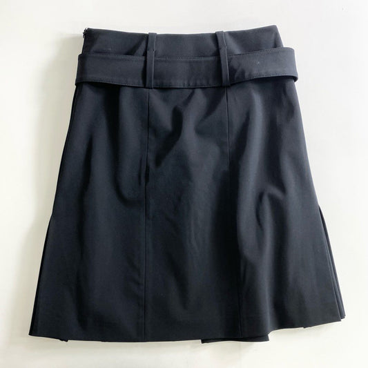 26b25 イタリア製 PRADA プラダ ベルト付 ギャザー フレアスカート サイドジップ 膝丈 38 ブラック レディース MADE IN ITALY
